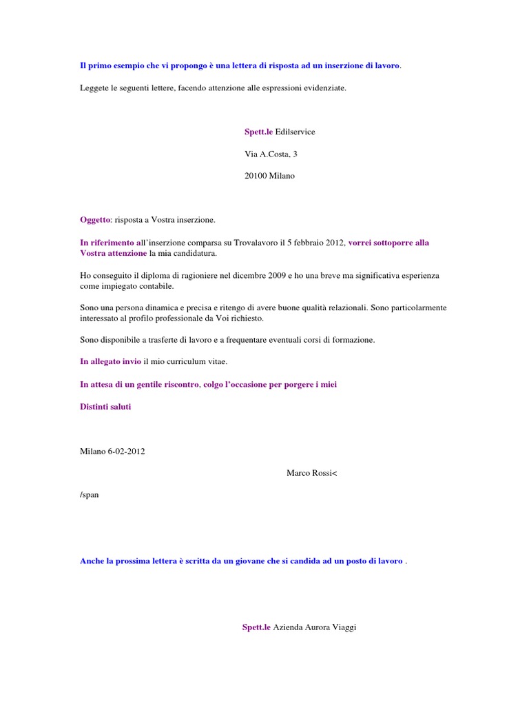 Come scrivere una lettera formale (esempio e guida) - Fabio ... Apr 22, 2017 · Per questo ho pensato di aiutarti realizzando una piccola guida, con diversi esempi e alcune semplici regole da seguire per scrivere correttamente una lettera formale. Come scrivere una lettera formale in italiano: il formato e il registro. Come impostare una lettera? Innanzitutto, a differenza della lettera informale, la lettera formale non va scritta assolutamente a mano, altrimenti perderà il suo carattere