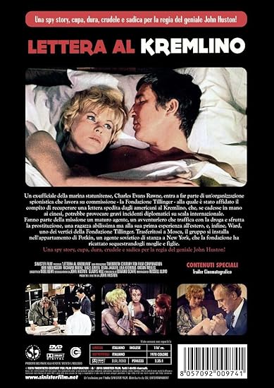 Lettera Al Kremlino [1970] - masterpico Lettera al Kremlino (Film/Spionaggio) Charles Evans e' un ex ufficiale incaricato da una organizzazione di spionaggio di recuperare una lettera spedita dagli americani al Kremlino, prima che venga intercettata dai cinesi. Lettera al Kremlino di John Huston amplifica le convenzioni dello spy movie da Guerra Fredda con cinico e beffardo pessimismo.