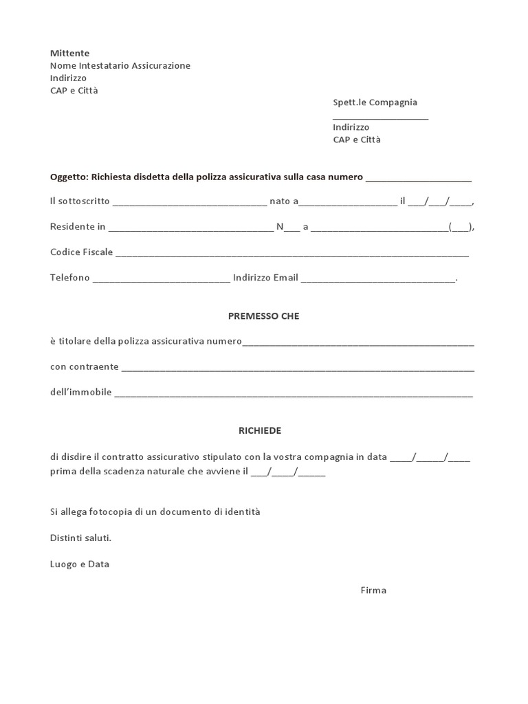 Lettera per recedere contratto